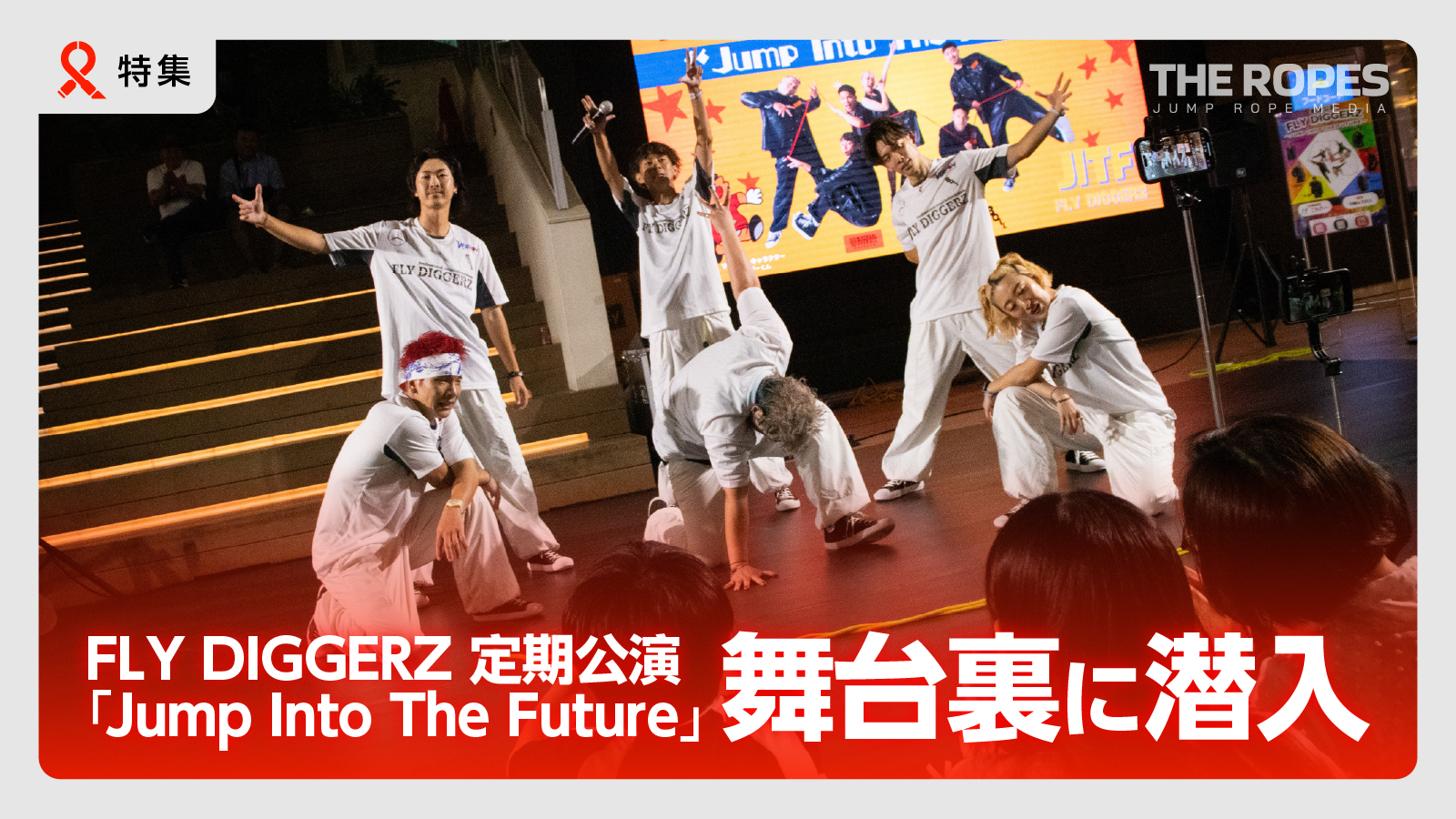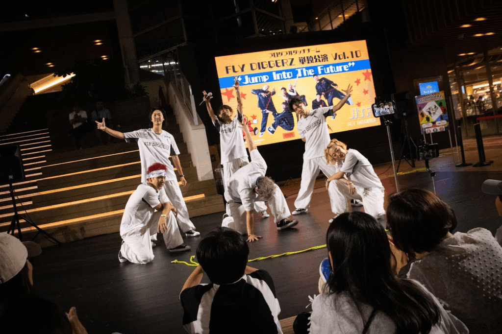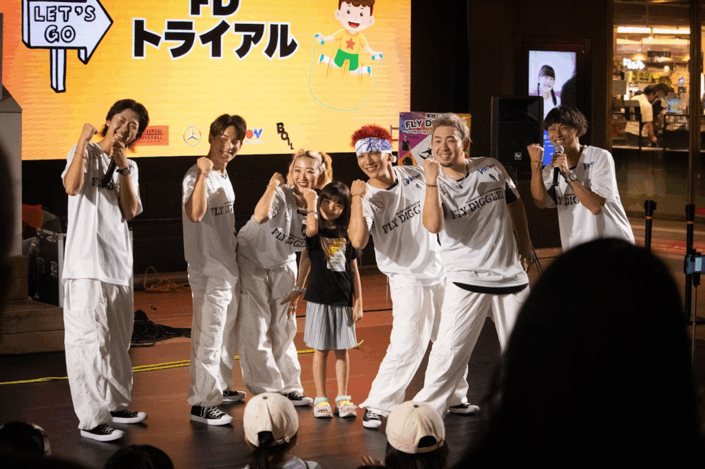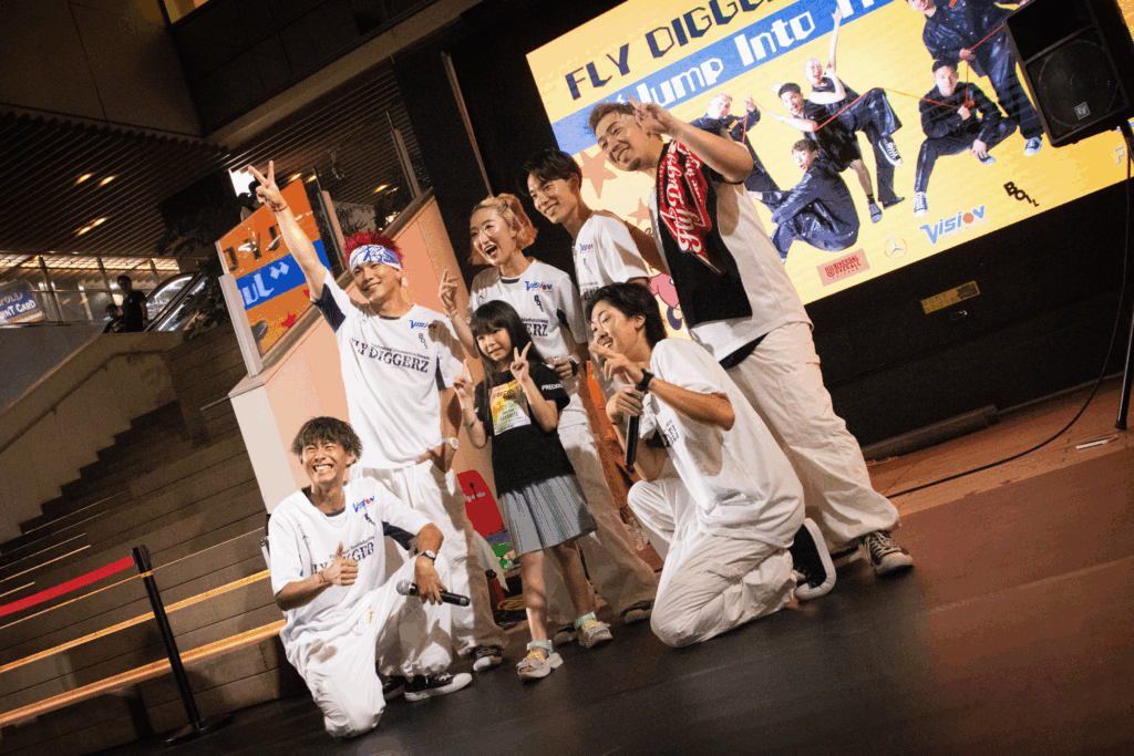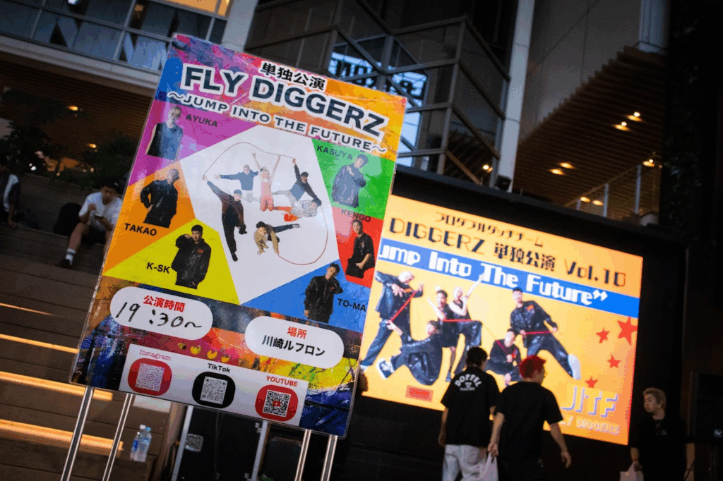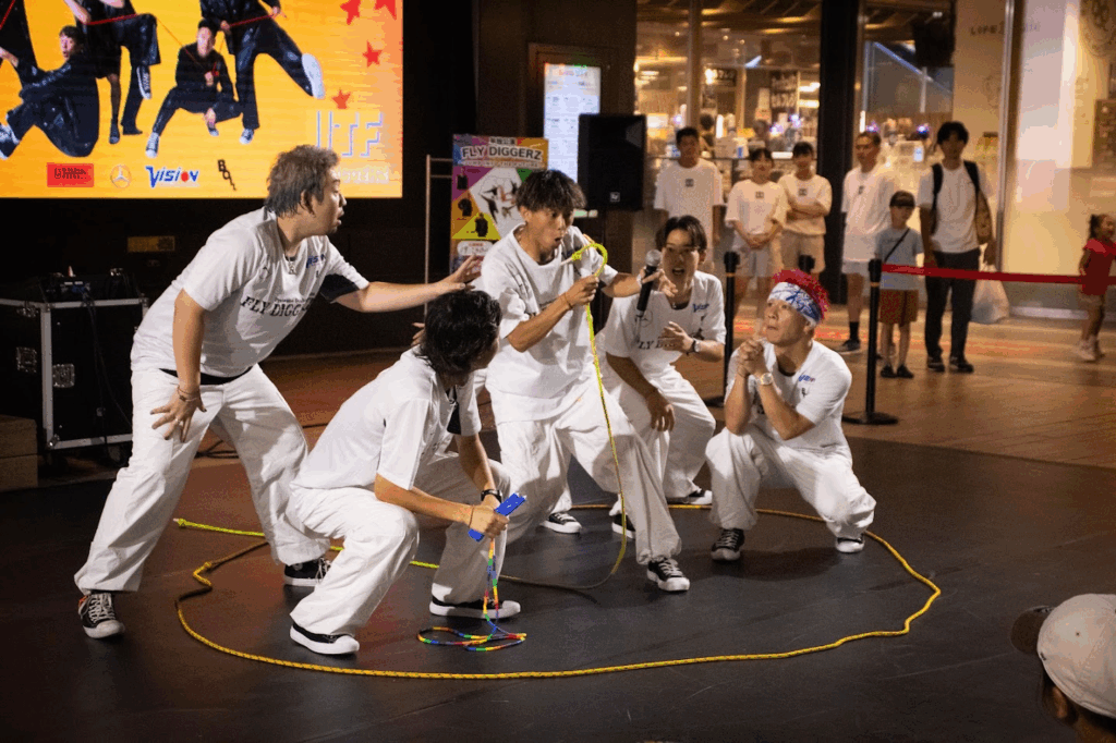 プロダブルダッチチーム「FLY DIGGERZ」が企画する単独公演「Jump Into The Future」。ほぼ毎月、場所はストリートの聖地と名高い神奈川県川崎市・川崎ルフロンで開催されている。