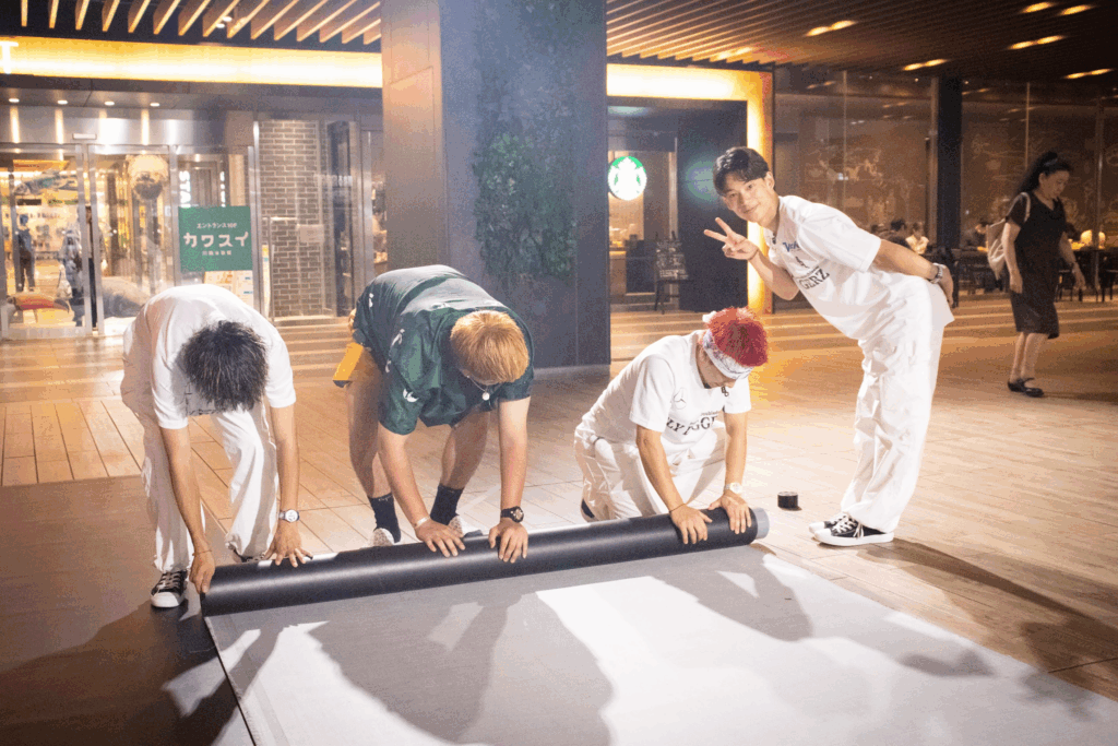 この日はスペシャルゲストに『FORTH』が参加するため、特別にリノリウム(敷物)を準備。スタッフのサポートはあるものの、ここでも自分たちで動く。