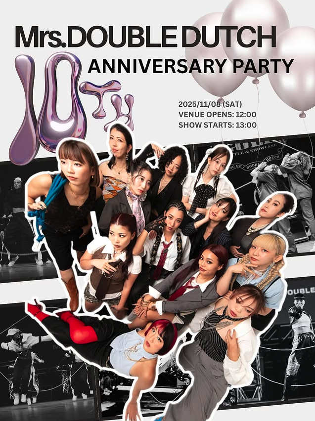 2025年 11月8日(土)、ダブルダッチチーム「Mrs.DOUBLE DUTCH」が結成10周年を記念したパーティーを開催する。そこでTHE ROPESでは、Mrs.DOUBLE DUTCHとのタイアップ企画として、リーダー・MISAへのインタビューを敢行。